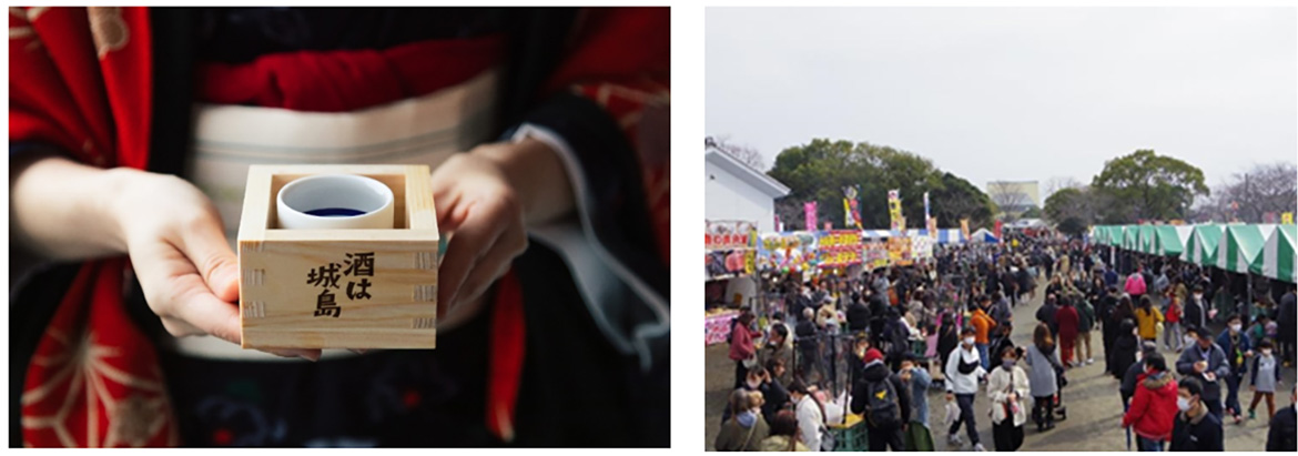 「城島酒蔵びらき」は、酒どころとして知られる久留米市城島にて、新酒ができる時期にあわせて毎年開催される一大イベント。城島の日本酒8蔵元でつくられた新酒の飲み比べをはじめとし、酒蔵巡りや、この地で長く受け継がれる「筑後酒造り唄」の披露、「城島龍神太鼓」の演奏なども楽しめます。メイン会場には、地元野菜や物産展ブースも並び、久留米市の食や伝統を体験できます。