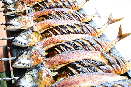 当時、冷蔵できない時代は行商が運んでくる半夏生さばは御馳走でした。最近では、市内の鮮魚店やスーパーで販売されており、店頭で焼き上げる鮮魚店には煙と香ばしい匂いが立ち込め、半夏生さばを買い求める多くの人で賑わいます。大野の夏を感じさせる半夏生さばを、ぜひ地元にて味わってみてください。