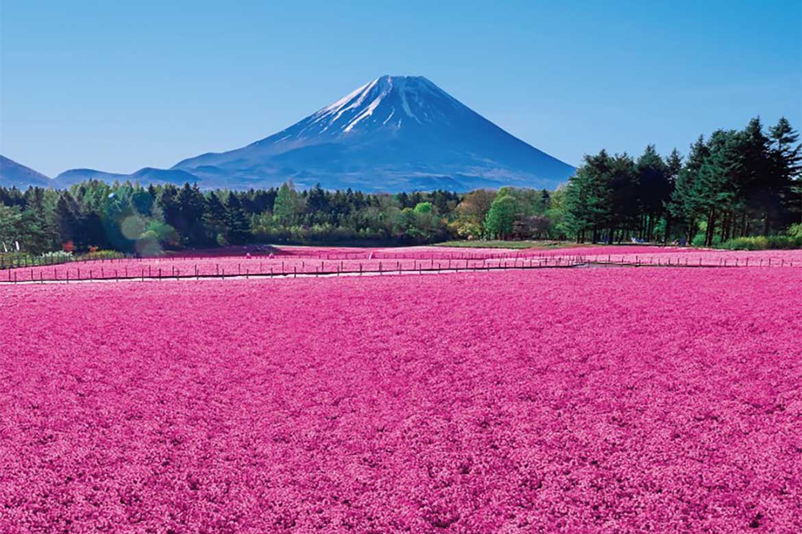 今年で17年目を迎える「富士芝桜まつり」。残雪の美しい世界遺産・富士山と、一面を埋め尽くす彩り鮮やかな芝桜との共演が楽しめる春の風物詩。マックダニエルクッションやオータムローズといったピンクやパープルなど、7品種の芝桜が楽しめます。今年のテーマ「息をのむ、ピンク。」の通り、一面に広がるピンクのじゅうたんは息を呑むほどの美しさ。この時期だけの大パノラマの絶景を堪能してみませんか。