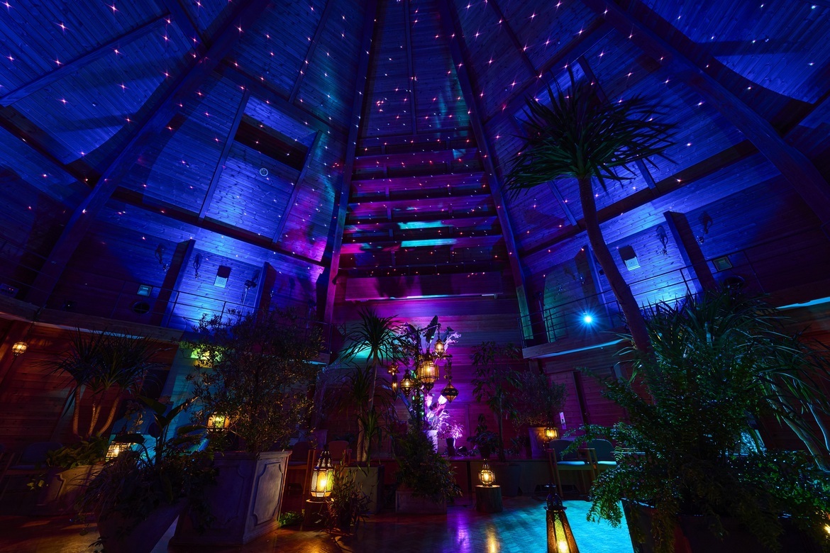 夏の屋内でも心地よく過ごせるイベントとして、「そこは、ランプの燈るおとぎの森」をテーマに2019年より開催している「癒しの森」は、暗闇のホールを光・音・香り・植物で演出した、「眠りの森」「森の中の湖」「かがり火の草原」「星明りの宇宙」の4つのシーンで構成。樹木や幻想的なモロッコランプなどが配置され、どこからともなく聞こえてくる鳥のさえずり、水辺の波音、草原の風など、自然の音で演出した”癒しの空間”は、まるで森の中にいるような気分にさせてくれます。