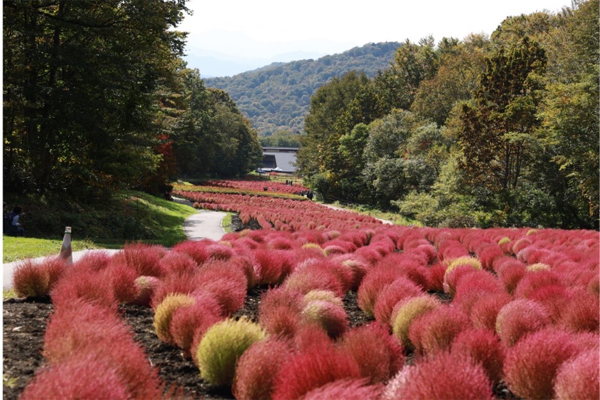 群馬県沼田市の標高1,250mにある玉原高原にて、ふわふわモコモコとした見た目と赤く色づく美しいコキアが斜面を紅色に彩る「たんばらコキアガーデン」が、2024年8月26日(月)よりオープンされます。