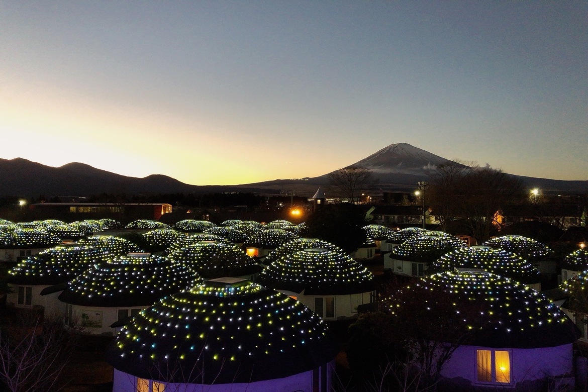 眼下一面に広がる光の海、色鮮やかで、時の流れと共に変化が見られる「スローハウストゥインクル」。夕暮れ時には、高台から富士山とトゥインクルのきらめくような幻想的な景色が見られるチャンスも。