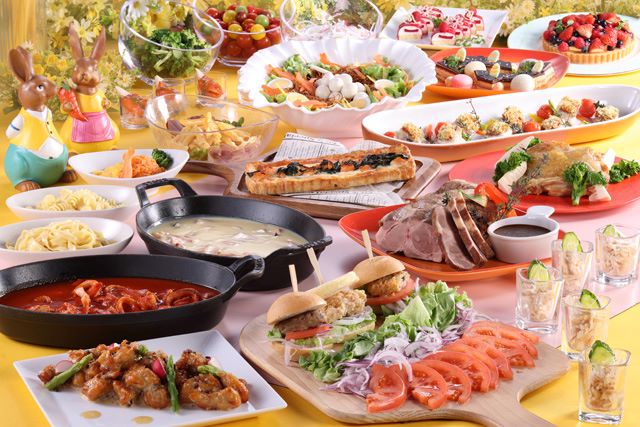 今年のスプリングフェアでは、期間中2つの異なるテーマで春の味覚を存分に楽しめる特別なディナーブッフェが用意されます。前半は、「春のおいしい始まり!」をテーマに、“たけのこ” や “菜の花” など旬の食材を使った、爽やかな春の訪れを感じるメニューが登場。さらに、毎年人気のイースタースイーツも加わり、心もお腹も満たされる「ときめく」ひとときが味わえます。後半のゴールデンウィーク期間は、「ハッピー!おいしい春祭り」と題し、明るく楽しいパーティムードに包まれた特別な10日間。ライブ感ある「牛肉のグリル」をはじめ、見た目もかわいらしいスイーツがブッフェを華やかに彩ります。