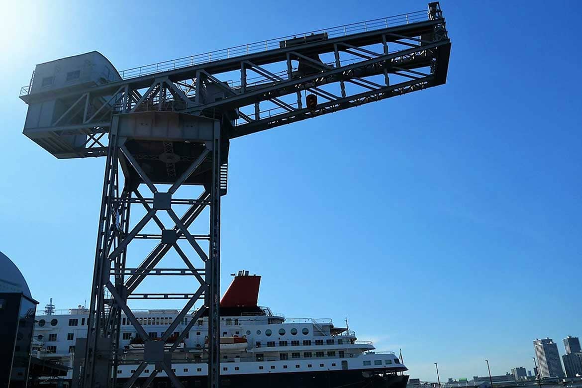 力強いクレーンは新港ふ頭を象徴するモニュメント「横浜ハンマーヘッド」