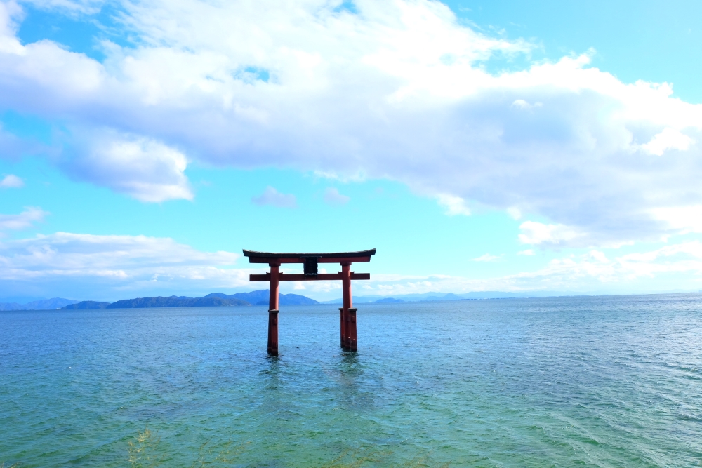 白鬚神社は霊験あらたかで神秘的なベールをまとったパワースポットです。長寿の神様である猿田彦命(さるたひこのみこと)が祀られていますが、それ以外にも縁結び・子授け・開運招福・学業成就・交通安全・航海安全など様々なご利益があるとされています。白鬚神社の見どころは何と言っても琵琶湖に浮かぶ大鳥居で、その幻想的な佇まいは「近江の厳島」と称されるほどです。写真を撮影する場合は安全のため展望台を利用してください。創建から2000年以上という悠久の歴史を刻んできた近江最古の神社は、地元民をはじめ多くの人々を魅了しています。毎年5月と9月に開催される祭事は要チェックです。