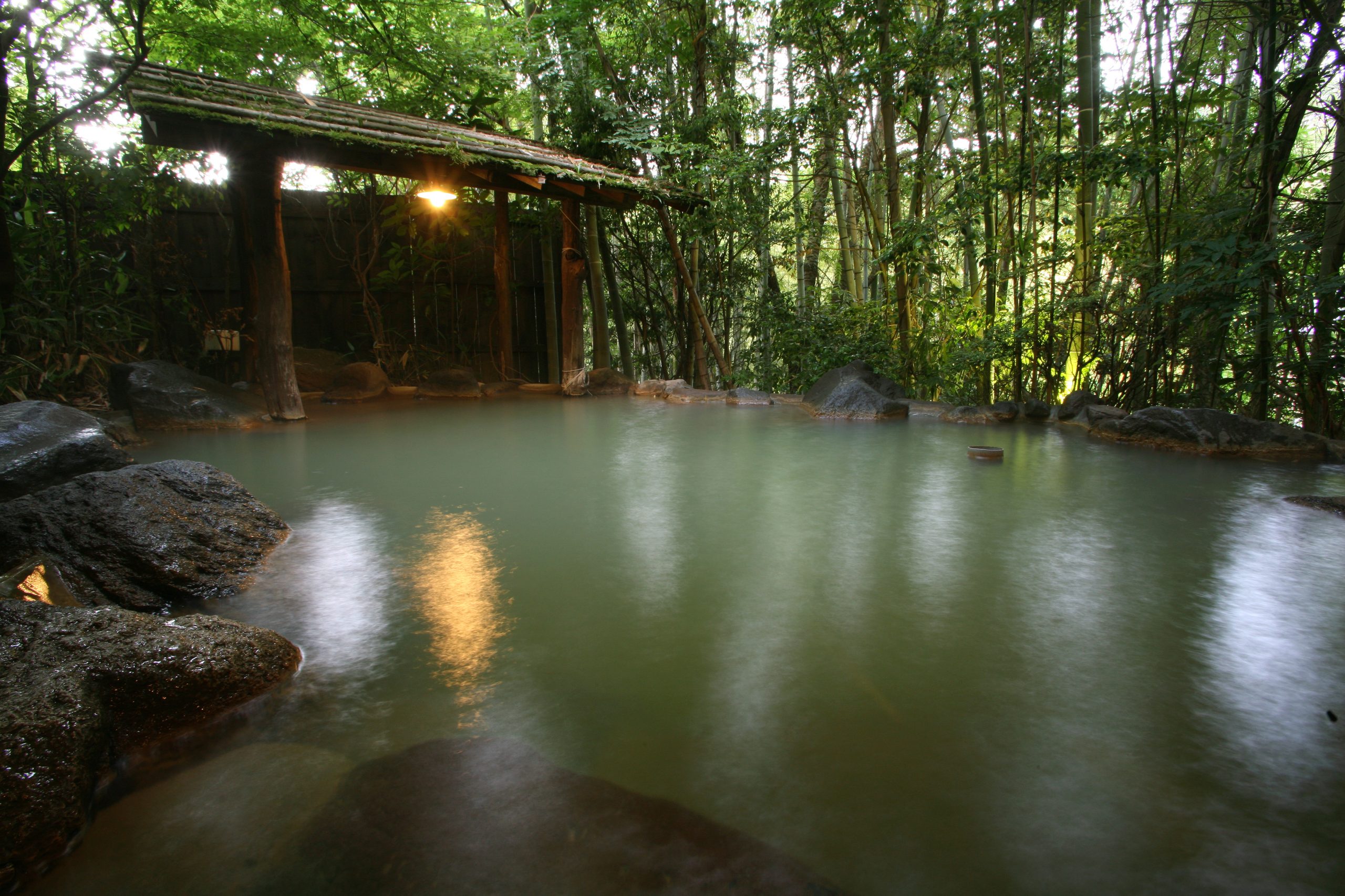 お宿の楽しみの一つでもある温泉は、神経痛や肩こり、美肌に効果のある弱アルカリ性単純泉。13種14もの湯船があり、黒川温泉最多を誇ります。あえて広い大浴場ではなく、こぢんまりとした湯船を豊富に設けることで、加水なしの源泉100%のお湯を贅沢に堪能できるという特長があります。