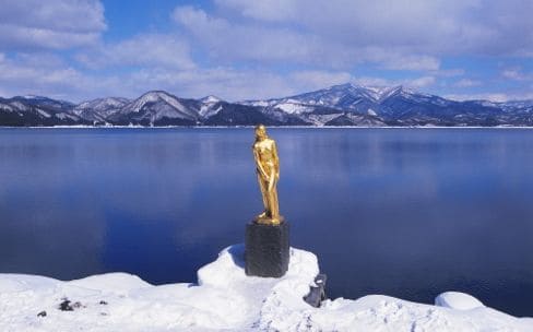 周囲約20kmのほぼ円形の湖で水深423.4mで日本一の深さを誇る。陽光の入る角度によって色が変わるという不思議な湖で日本百景にも選定。「田沢湖ブルー」と呼ばれる独特な色の神秘的な雰囲気をたたえた湖は、四季折々表情豊かに訪れる人々を楽しませてくれる。永遠の美と若さを祈願して湖に身を沈め龍に化身したたつこ伝説がある。