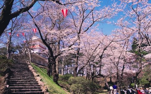 秋田藩主・佐竹氏20万石の居城だった久保田城の城跡。石垣や天守閣がない土塁の平山城として知られる。明治時代に日本庭園が造られ、千秋公園と名付けられた。二の丸は藩主が能や町踊りを上覧したといわれる広場。春になると、ソメイヨシノを中心とする761本の桜が咲き誇る。日本さくら名所100選に選定。5月中旬からはつつじも見ごろとなる。