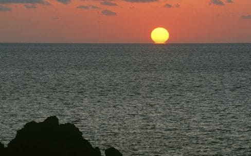 男鹿半島西北端の岬、芝草におおわれた大地の先端には入道埼灯台がある。白黒の縞模様が印象的で「日本の灯台50選」に選ばれている。入道埼灯台は1898年(明治31年)11月8日に点灯を開始し、高さ27.92mの灯台から15秒おきに発光する白い光は37km先まで到達。入道崎で見られる夕陽は、雄大な自然の美しさを文字通り体感できる。