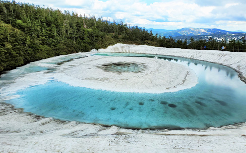 八幡平にある「鏡沼」では、冬から春にかけて大量の雪解け水が流れ込み、春には中央部が持ち上がり、そして暖かくなるにつれ中央部の中心の雪から溶けはじめる現象が発生。その景観が龍の眼のように見えることから、ドラゴンアイと呼ばれているんだそう。運が良ければ、5月下旬から6月上旬頃に神秘的な景色に出会えるかも。