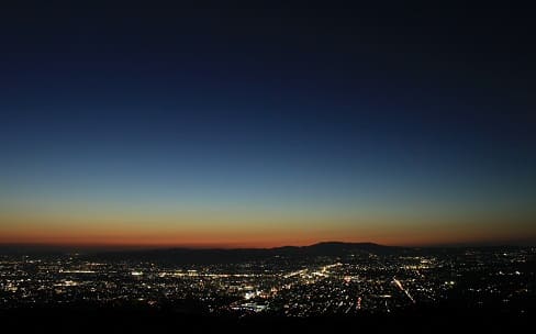 生駒山は奈良県と大阪府の県境にある山で標高642m。南北に渡って生駒山地を結ぶ全長約20.9kmの「信貴生駒スカイライン」は、壮大なパノラマが見られる絶好の夜景スポットとして知られ、大阪・奈良方面のキラキラと輝く美しい街並みを心ゆくまで楽しめる。中でも、高さ12mの展望台・「鐘の鳴る展望台」は、多くのカップルやファミリーで賑わう、最も著名なスポットだ。