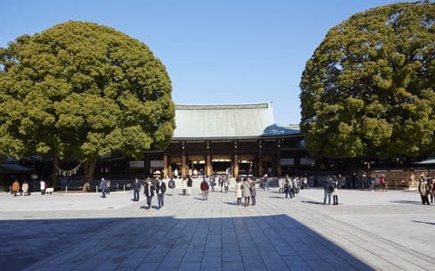 明治天皇と昭憲皇太后を祀る「明治神宮」は大正時代に創建。境内は自然豊かで鳥居をくぐり、うっそうとした木々に囲まれた参道を抜けると本殿に到着。壮大なパワーを感じるその佇まいには思わず圧倒される。運がよければ挙式中のカップルに遭遇することも。荘厳な雰囲気の本殿前で見られる日本伝統の結婚式の風景は外国人観光客にも人気。
