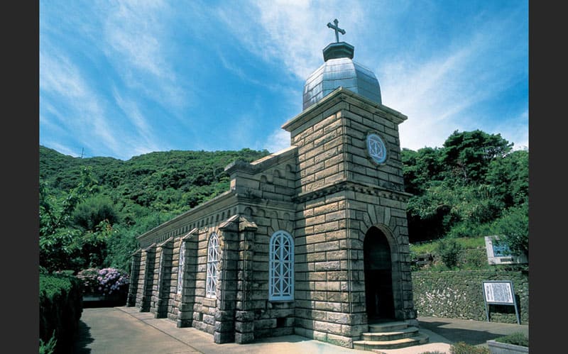 頭ヶ島では、1868年「五島崩れ」と呼ばれるキリシタン迫害により島民全員が一時島を脱出。その後戻ってきた島民のために、1887年、木造の頭ヶ島天主堂が建てられ、1919年には現在の石造りの教会が完成。椿をモチーフにした花柄文様があしらわれおり、「花の御堂」とも呼ばれている。厳かな雰囲気漂う教会は国指定重要文化財。さらに、この頭ヶ島天主堂を含む「頭ヶ島の集落」が世界文化遺産「長崎と天草地方の潜伏キリシタン関連遺産」の構成資産となっている。※見学には事前連絡が必要