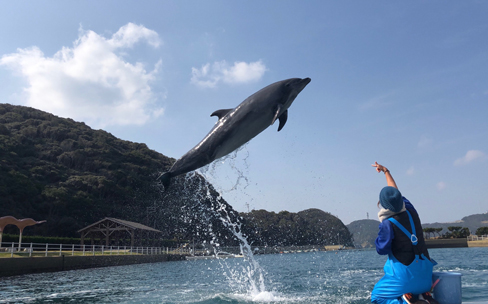 天然の入り江を仕切ってつくられた海浜公園。イルカにタッチしたり、ご飯をあげたり、トレーニング体験をしたり。子供から大人まで楽しめる様々な体験プログラムが用意されている。他に、デイキャンプやBBQなど壱岐島の自然を活かした体験も。また、地元食材が味わえるカフェが併設されており、カフェでゆっくりくつろぎながら、イルカを眺めて癒される。極上のリフレッシュ時間が過ごせるはず。