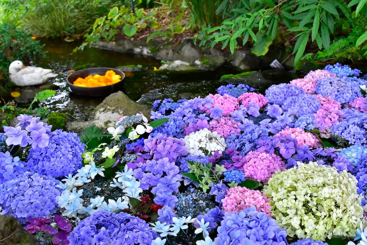 伊豆・城ヶ崎海岸を背景に、四季折々の花々とティファニーランプが楽しめる「ニューヨークランプミュージアム&フラワーガーデン」にて、「あじさい苑」が2024年5月25日(土)よりオープンされます。