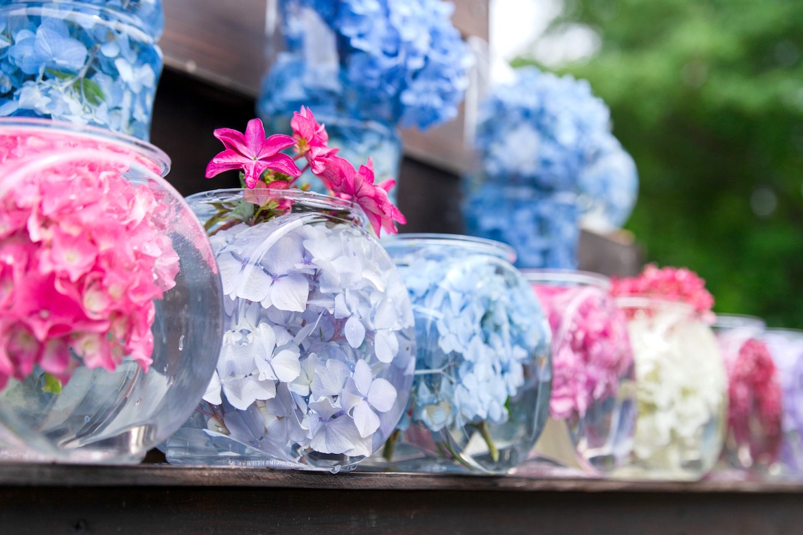 園内に咲くあじさいなどの生花と水を使った展示イベントで、「あじさいの花手水」や「あじさいの万華鏡」は写真映えすると毎年人気。