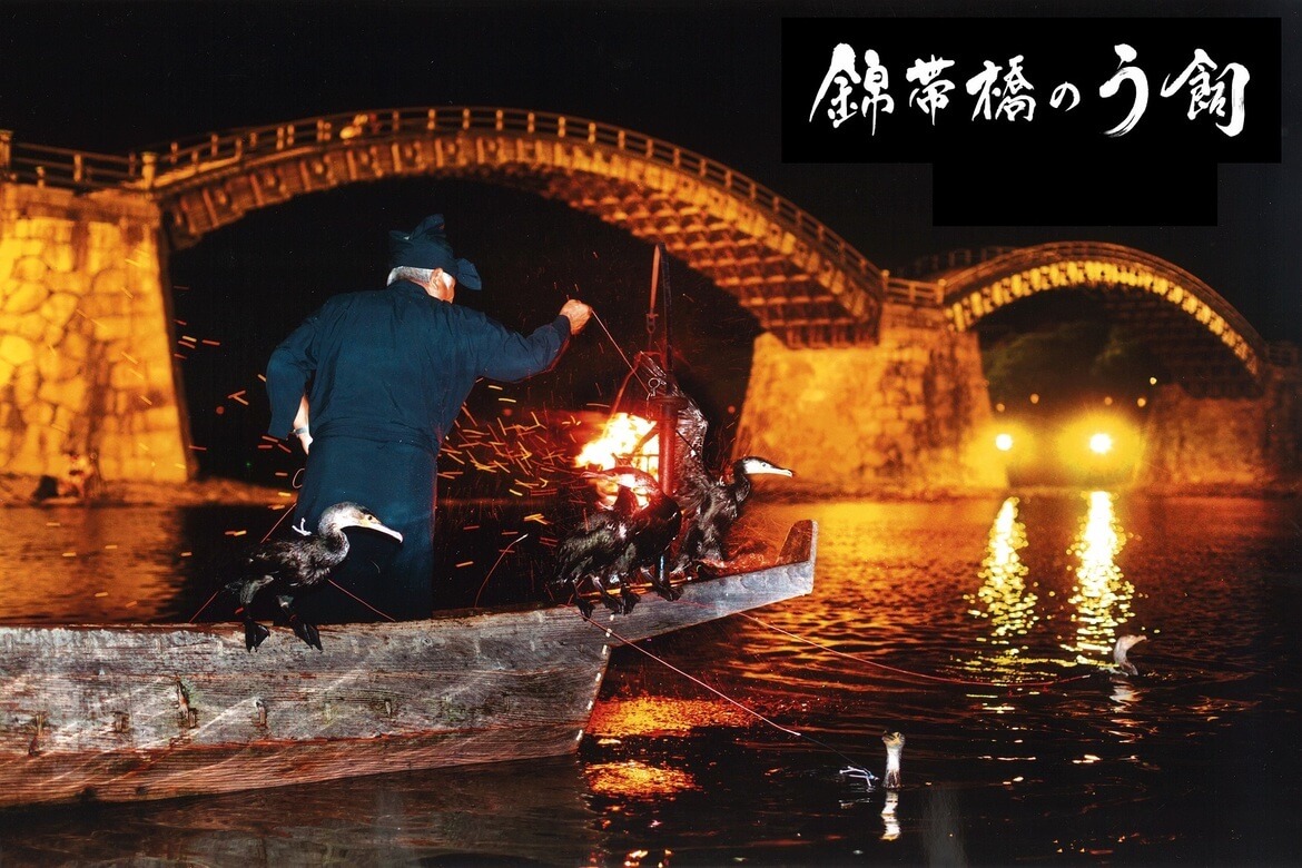 鵜を使って鮎を獲る漁法を「鵜飼」といい、「錦帯橋のう飼」は、鮎漁が解禁となる夏の夜、清流・錦川に架かる名勝「錦帯橋」のたもとで行われ、川の流れとともに篝火(かがりび)を焚いた鵜飼舟が錦帯橋に近付き、古式ゆかしい衣装に身を包んだ鵜匠が巧みな手さばきで、鵜を操る姿が見られる夏の風物詩です。今年の「錦帯橋のう飼」は、2024年6月1日(土)より開催。