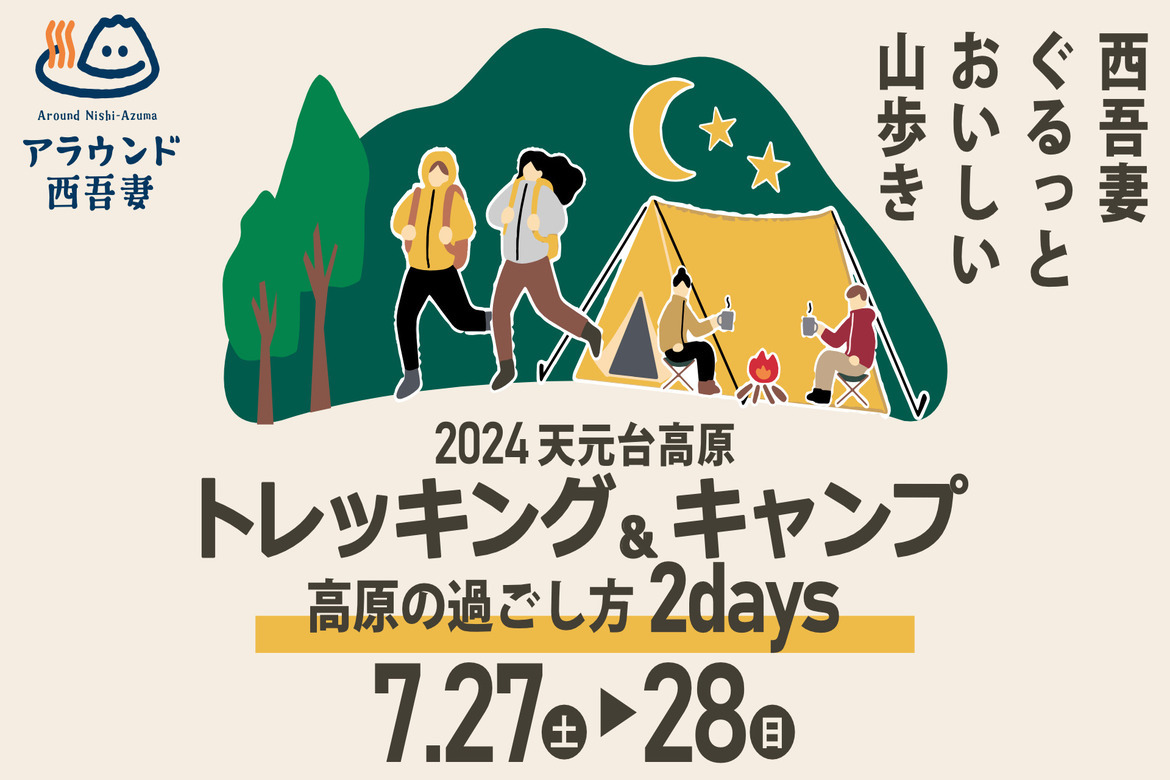 山形県米沢市の西吾妻山・天元台高原・白布温泉エリアの観光再生に取り組む天元台×白布リボーン協議会が主催する「天元台トレッキング&キャンプ〜高原の過ごし方2days〜」が、2024年7月27日(土)〜28日(日)の2日間で開催されます。