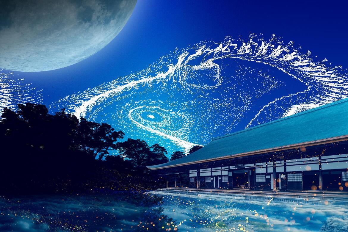 最新技術を使ったプロジェクションアート 建仁寺の象徴である⼩泉淳氏作「双⿓図」と、現代アーティストであり慶應義塾⼤学の教授でもある脇⽥玲氏が、最新の流体シミュレーション技術を使ってエネルギーの流れを可視化するプロジェクションアートの共演。仏法の守護神である⿓のエネルギーを感じる体験をお楽しみください。