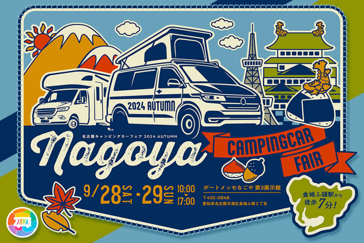 愛知県名古屋市にある「ポートメッセなごや 第3展示館」にて、キャンピングカーやキャンピングトレーラーが160台以上展示され、最新モデル、人気モデル、個性派モデルなど、さまざまな車両に出会える東海地区最大規模のキャンピングカーイベント「名古屋キャンピングカーフェア2024 AUTUMN」が、2024年9月28日(土)・29日(日)に開催されます。