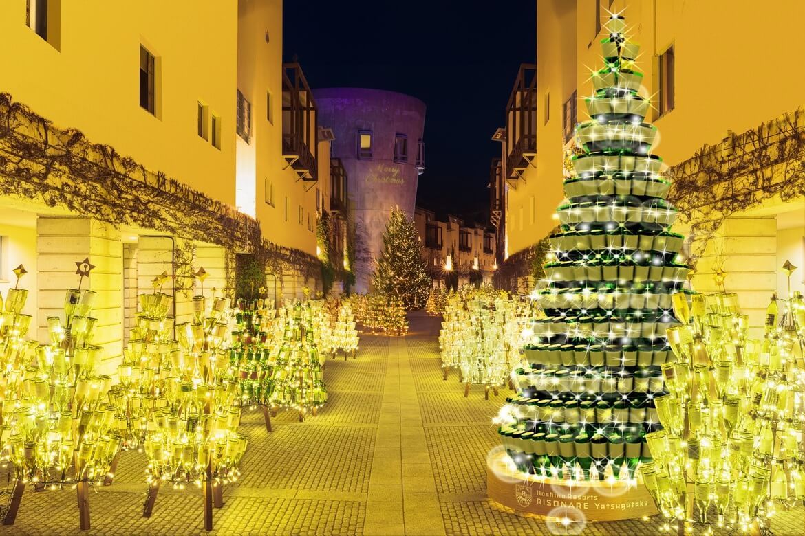自然豊かな八ヶ岳エリアのリゾートホテル「星野リゾート リゾナーレ八ヶ岳」では、2024年12月1日(日)~25日(水)の期間で、「山梨ワイン」をテーマに、夜空の下に1万2千本のワインボトルが輝く「ワインリゾートクリスマス 2024」が開催されます。