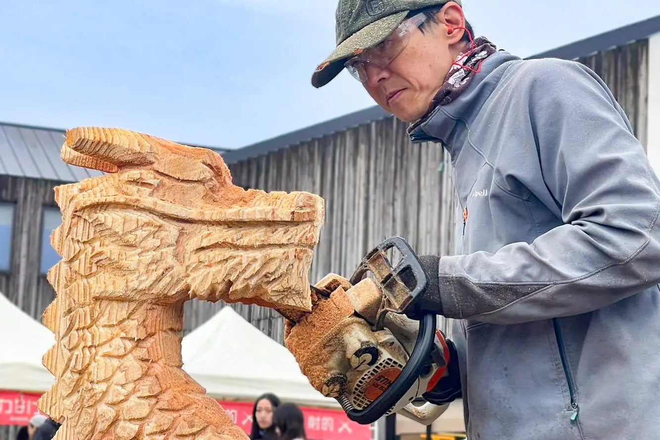■ 2025年干支彫刻「巳」新春チェンソーアートショー