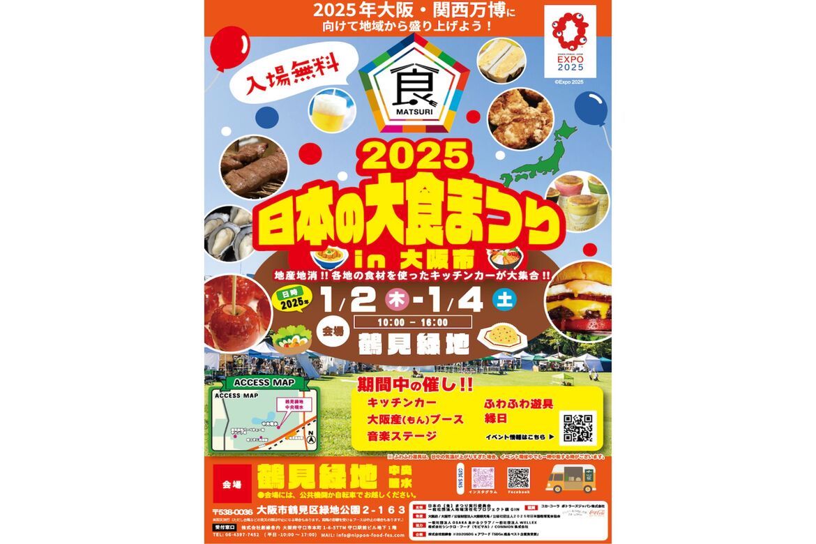 大阪市鶴見区に位置する都市公園「花博記念公園 鶴見緑地 噴水広場」にて、多彩なグルメが集結する「日本の大食まつり in 鶴見緑地」が、2025年1月2日(木)〜1月4日(土)の期間で開催されます。