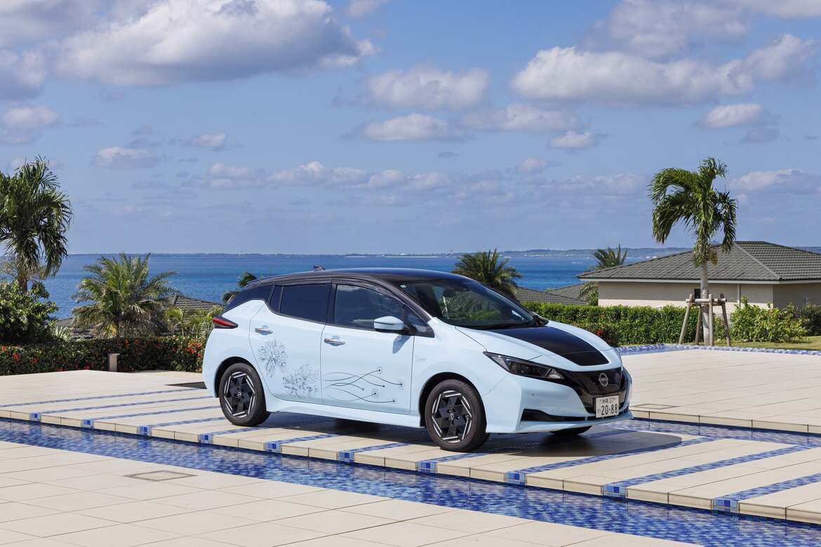 日産自動車の「リーフ」を5台用意しており、車体側面には、沖縄が生んだデザイナーYOKANGがデザインした「ハイビスカス」と、シーウッドホテルの敷地内で見かける「宮古マドボタル(通称シーウッドホタル)」がデザインされています。