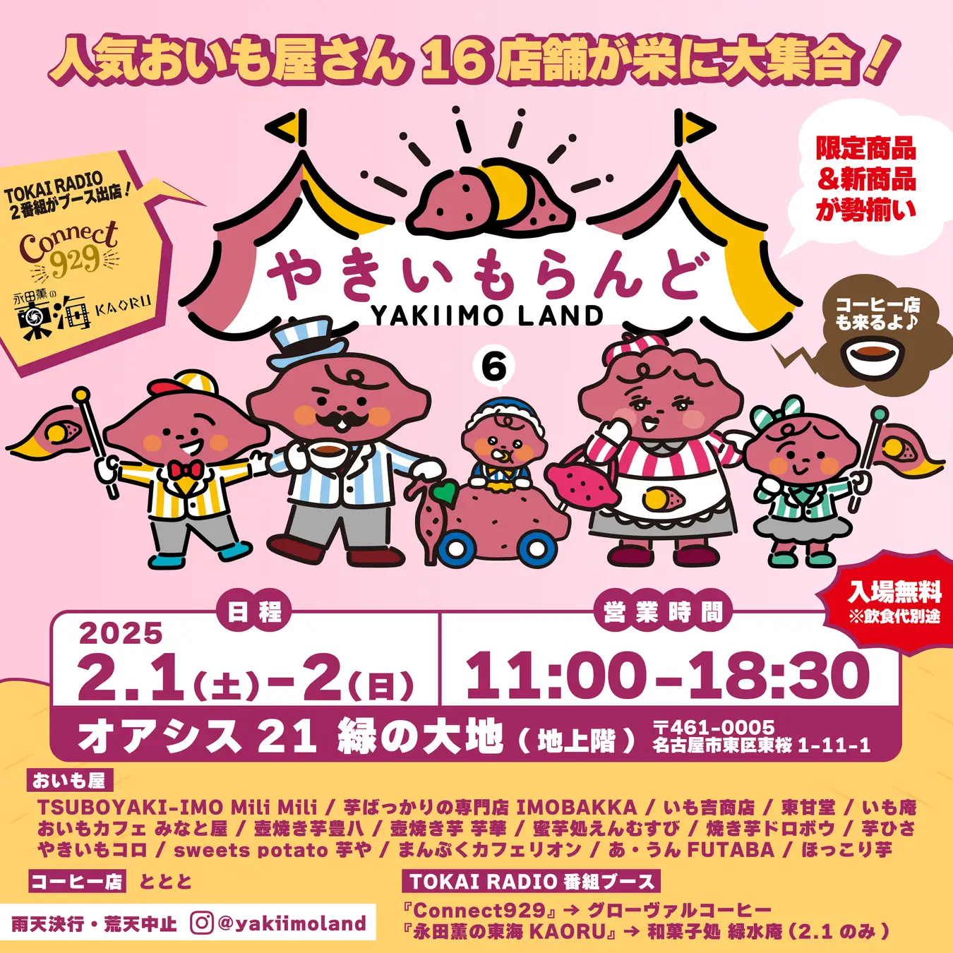 人気おいも屋さん16店舗が名古屋に大集合!2月1日~2日にオアシス21で『やきいもらんど』開催決定!!