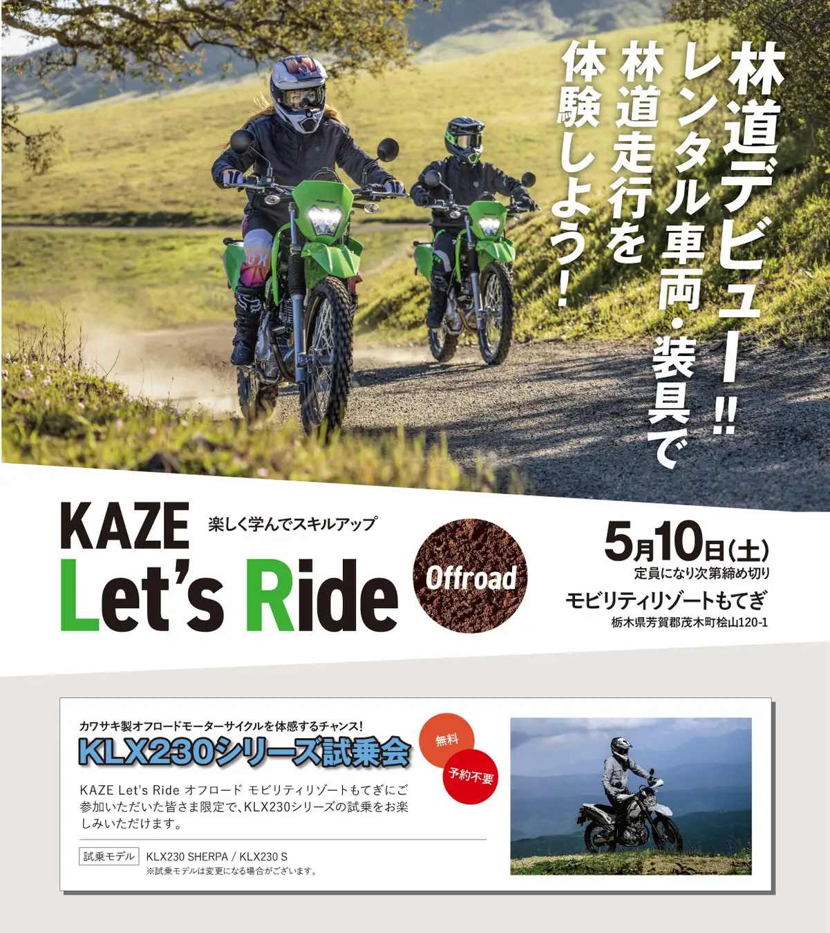 イベント詳細:https://www3.kawasaki-motors.com/kaze/letsrideon/