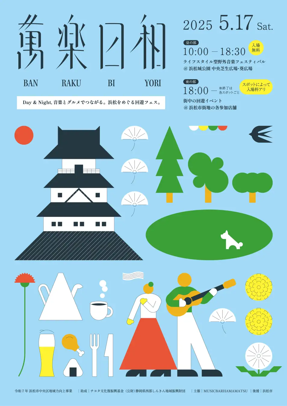 静岡県浜松市内各所にて音楽イベントを企画している「MUSICBAR HAMAMATSU」は、2025年5月17日(土)浜松の音楽に没頭する1dayイベント「萬楽日和(ばんらくびより)」を開催いたします。