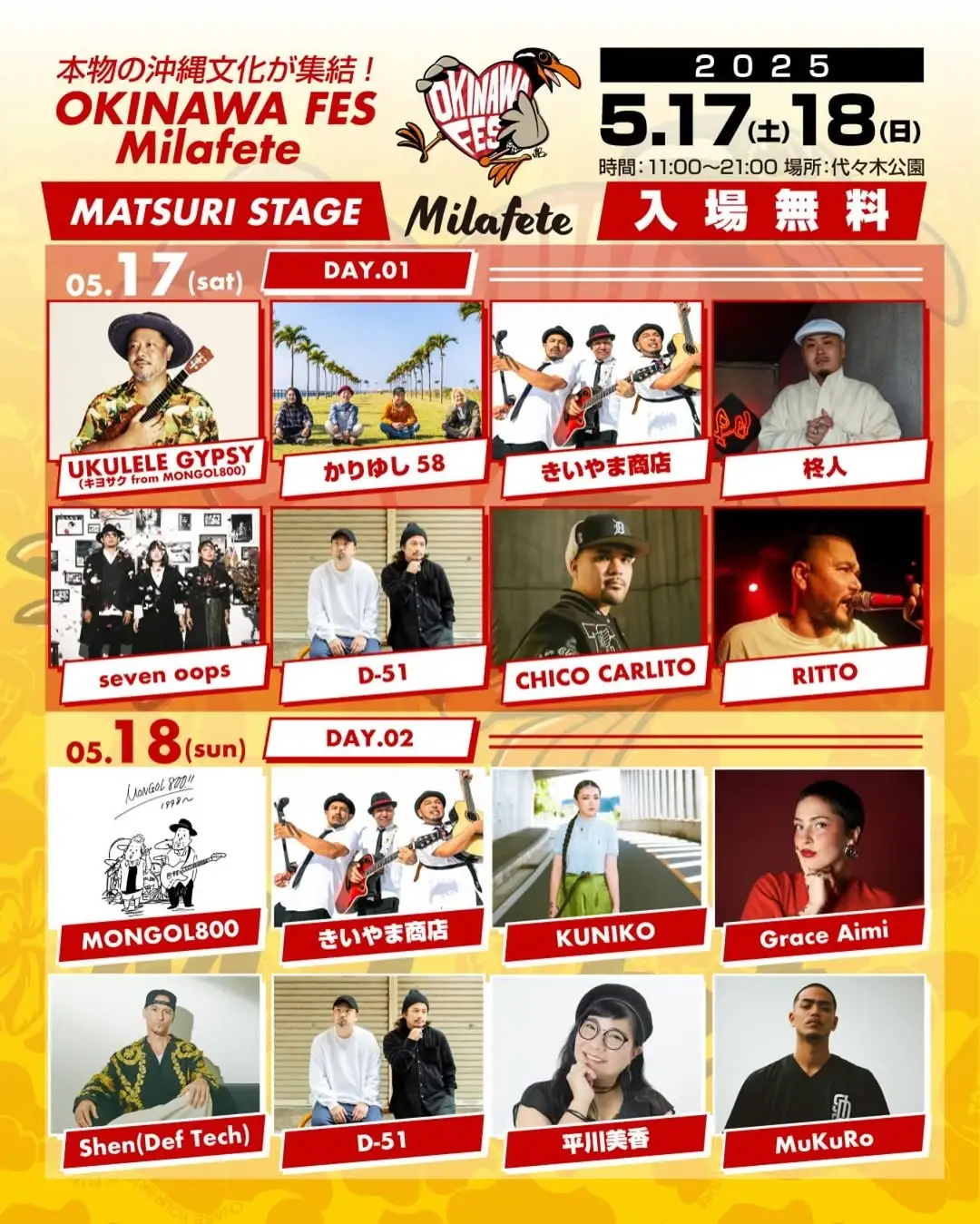 「OKINAWA FES Milafete」は、2025年5月17日(土)・18日(日)の2日間にわたり、東京都・代々木公園イベント広場(東京 都渋谷区神南2-3)にて開催いたします。