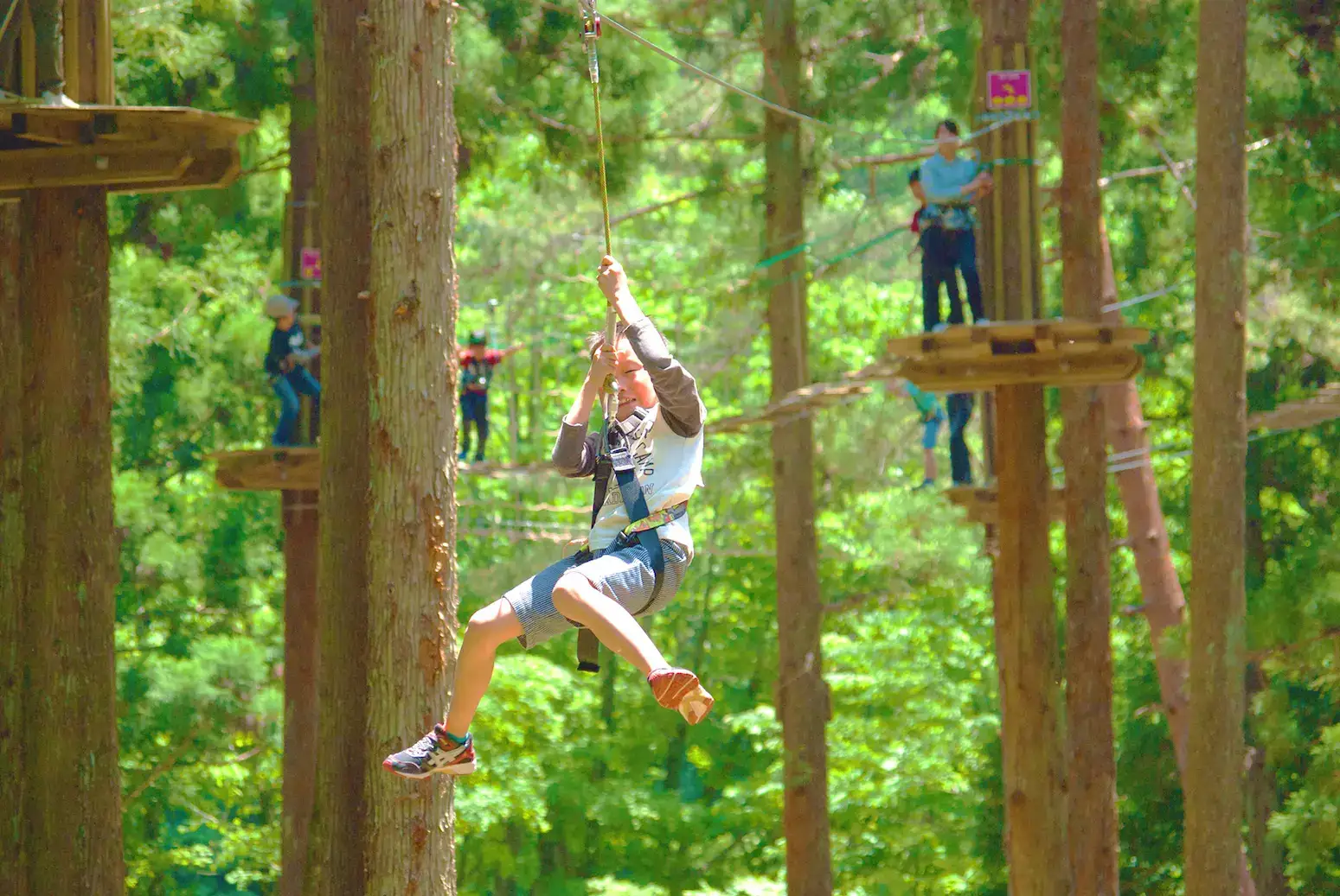 「フォレストアドベンチャー」は、森の立木を活かした樹上コースを自らの力で進んでいく“本気の冒険”が楽しめる体験型アクティビティとして人気の施設です。欧州基準の安全器具を装着して、子どもから大人まで非日常の冒険を安心して体験できます。
