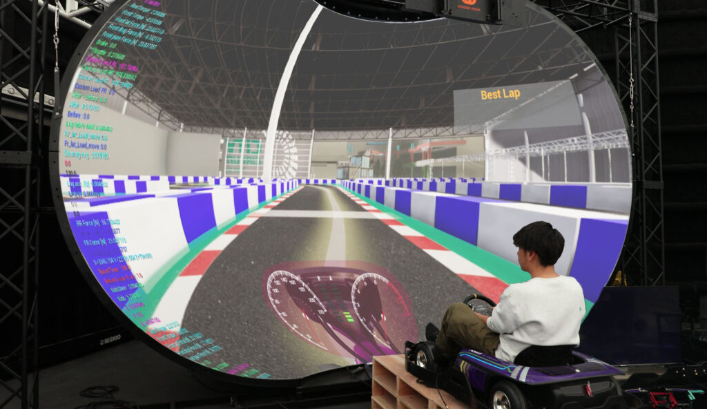 「EV ミニカート×プロジェクションマッピング 2025」は、Digital Innovation City(DIC)協議会(デジタルイノベーションシティ協議会)の実証事業として実施するもので、リアル EV カートに触れてもらう機会を作ると同時に、モータースポーツの楽しみ方をテクノロジーによりアップデートすることを目指す試みです。大型半球体スクリーンを使ったカートシミュレーターの位置情報をリアルタイムにコースに映し出すことで、リアル(EV カート)とバーチャル(シミュレーター)を融合させた体験型コンテンツです。ご利用に当たっては、事前予約が可能で、ご来場当日でも、お申込みいただけます。また、体験後はアンケートにご回答いただき、今後のサービス向上や実証事業への活動につなげてまいります。