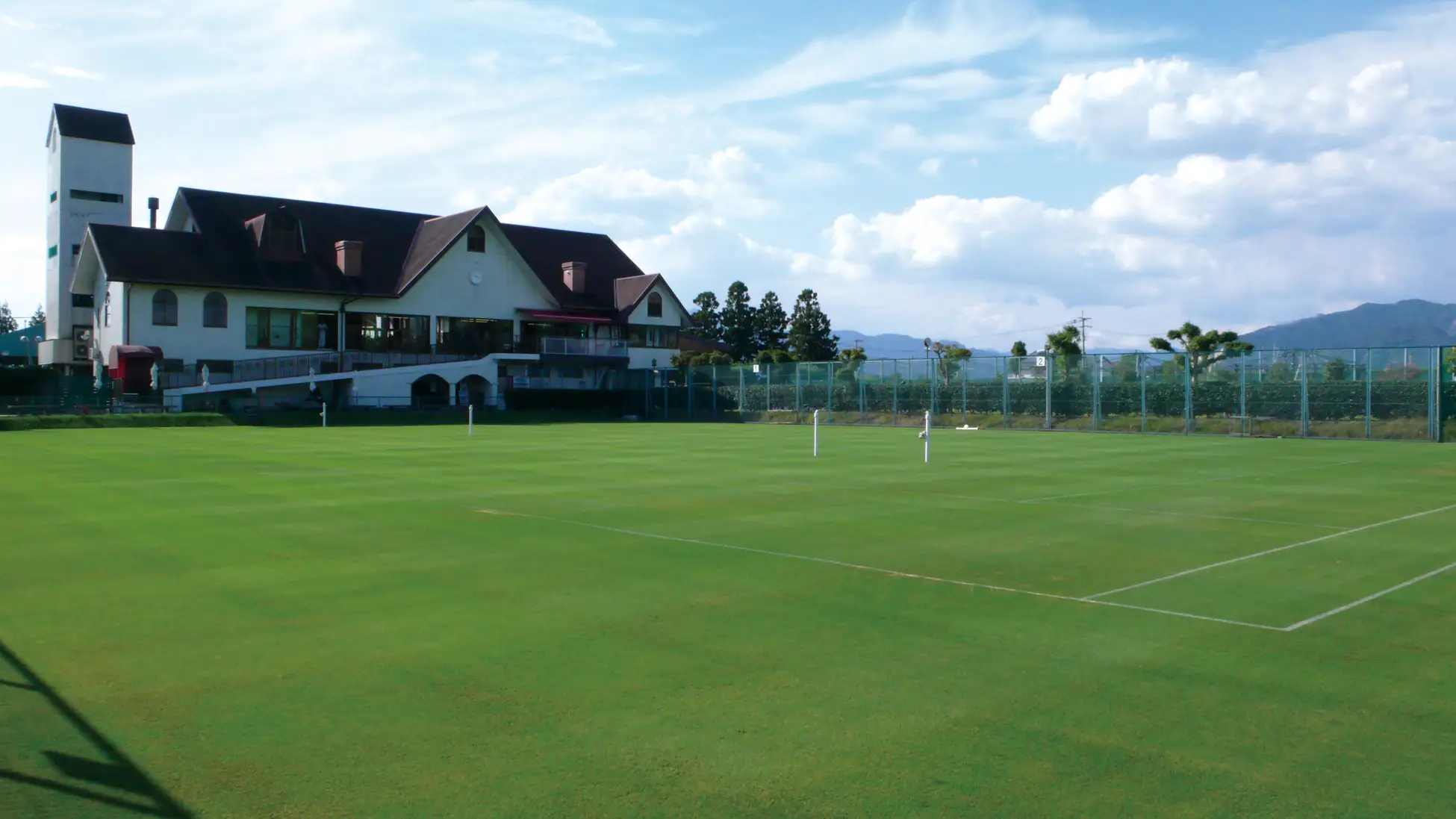 1975年創立。ウインブルドンに感銘を受けた創立者・緒方勝徳氏により設立された、日本で唯一、そして最大規模の**天然芝コート(14面)**を備えるテニスクラブ。21面の多様なコートに加え、国際的なネットワークを活かし、次世代育成・国際交流・文化継承に力を入れています。