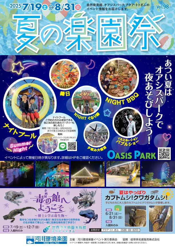 屋内も屋外も、涼しく楽しく過ごせる“夏の楽園”!岐阜県各務原市にある「河川環境楽園」では、2025年7月19日〜8月31日までの夏季期間限定で「夏の楽園祭」を開催中。