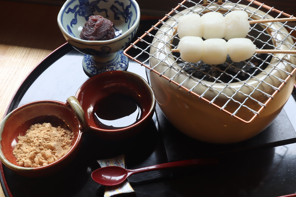国指定名勝庭園「藤江氏魚楽園」の敷地内にあるカフェ「亀草庵」。古民家を使った古きよき日本の空間が老若男女を和ませ、お団子や抹茶などの和スイーツが楽しめます。おすすめは一輪で団子を焼きながら食べる「ふわふわみたらし団子セット」。四季折々に彩る庭園を眺めながら、和モダンなカフェタイムで癒されてみてはいかがでしょうか。