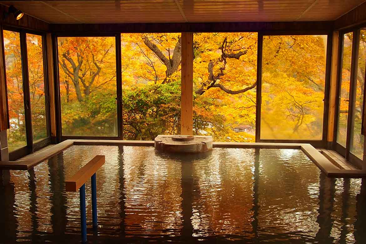 日光や那須で紅葉を楽しんだ後は、温泉でリラックスしながら栃木の秋を感じてみませんか。那須温泉郷は、那須岳の山麓に那須湯本温泉や大丸温泉など複数の温泉が点在しており、それを総称して那須温泉郷と呼ばれています。現在の共同浴場「鹿の湯」の源泉が発見されてから1300年以上も続いてきた歴史ある温泉郷で、湯量が豊富で源泉温度が高めなのが特徴的。硫黄泉や単純泉など泉質や効能がそれぞれで違うので、湯めぐりに出かけるのもオススメな楽しみ方です。雄大な自然を間近に感じながら、温泉や宿の料理など那須を存分に堪能し、旅の疲れを癒してください。