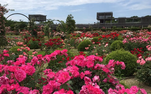 ナゴヤドーム約17個分の広大な敷地には、約7000品種、3万株のバラ園のほか、大温室「花の地球館」や高さ45mの「花のタワー」などがあり、一年中、美しい花木を楽しむことができる。バラの見ごろは春と秋、5月下旬~6月下旬は一年で最も多くのバラが咲き、10月下旬~11月上旬は一年で最も美しい香り豊かなバラが堪能できる。