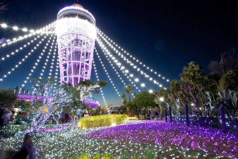 藤沢市にある湘南海岸から相模湾へと突き出ている島で、江ノ島へは歩いて渡ることができる。2003年にリニューアルされた江ノ島シーキャンドルは、江ノ島のシンボルとして親しまれている。ガラス張りの展望フロアや屋外展望台からは360度のパノラマの眺望が楽しめ、特に夕景や四季折々に変わるライトアップが美しい。大人500円(江ノ島サムエル・コッキング苑入園料 + 江ノ島シーキャンドル昇塔料)