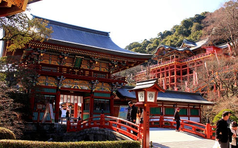 漆で仕上げた極彩色の建物が壮麗な、日本三大稲荷の一つ